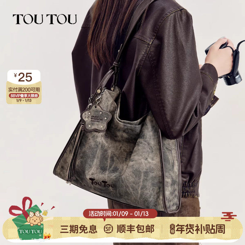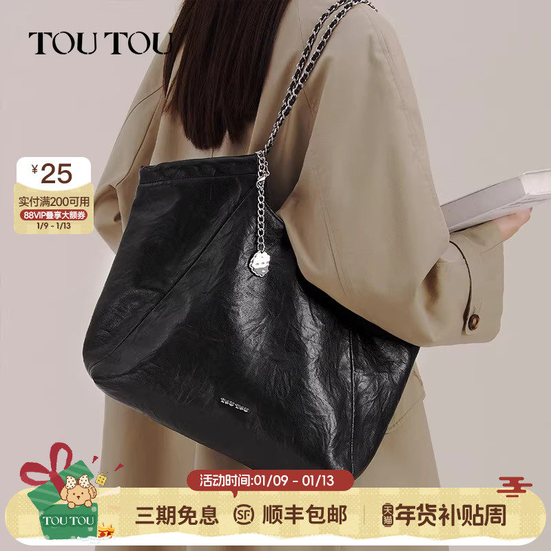 新年生日TOUTOU大容量托特包高级感时尚通勤大包褶皱单肩腋下包女