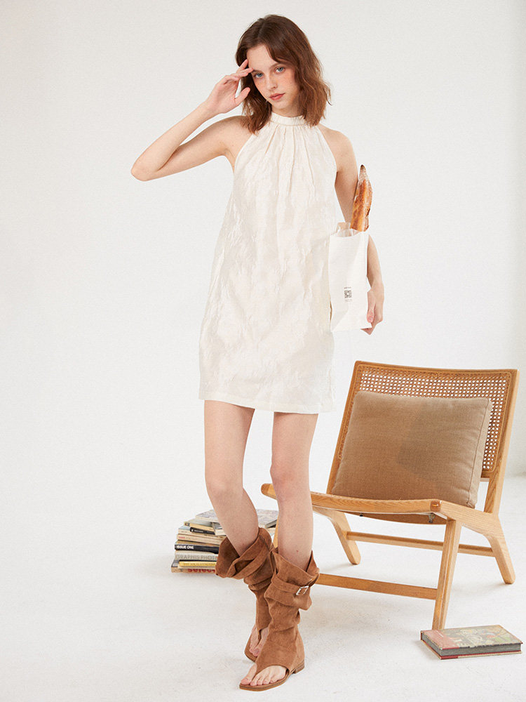 peur挂脖连衣裙露肩无袖合身显瘦意大利进口提花立体肌理原创小众