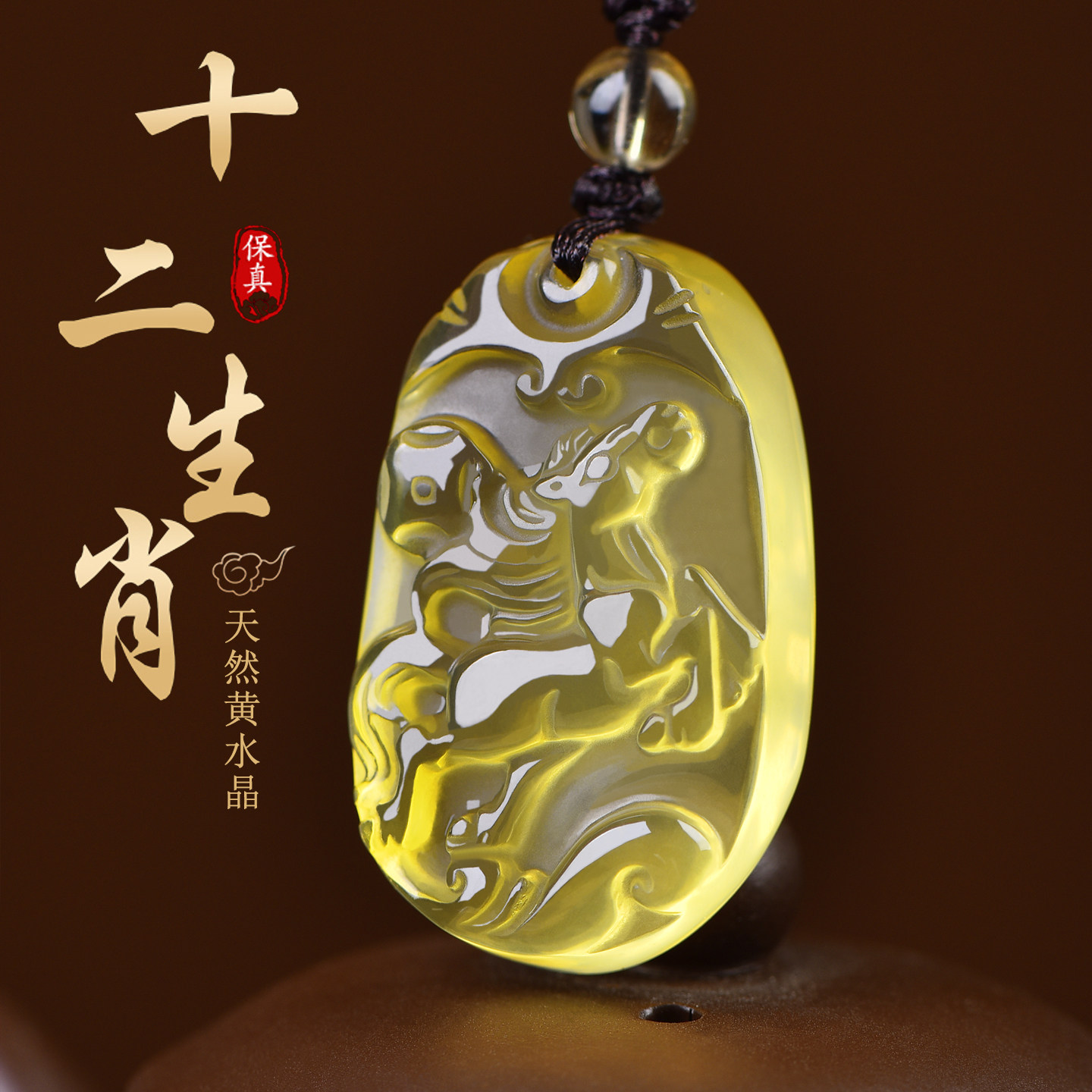 黄水晶吊坠十二生肖项链白水晶属鼠牛虎兔龙蛇马羊猴鸡狗猪挂饰品