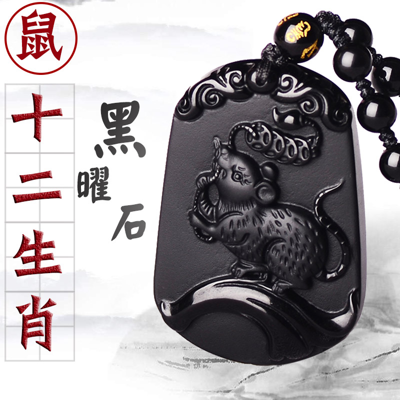 天然黑曜石十二生肖吊坠属龙立体挂件鼠牛虎兔蛇马羊猴鸡狗猪饰品