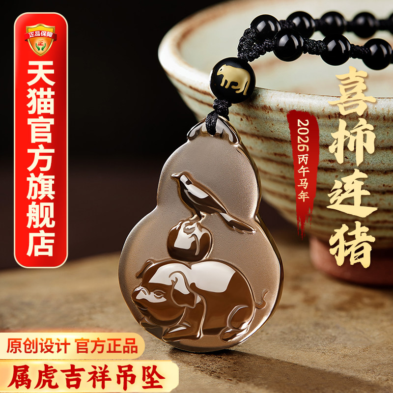 淘运阁喜柿连猪吉宏吊坠属虎人吉祥佩戴物2026马年黑曜石葫芦项链