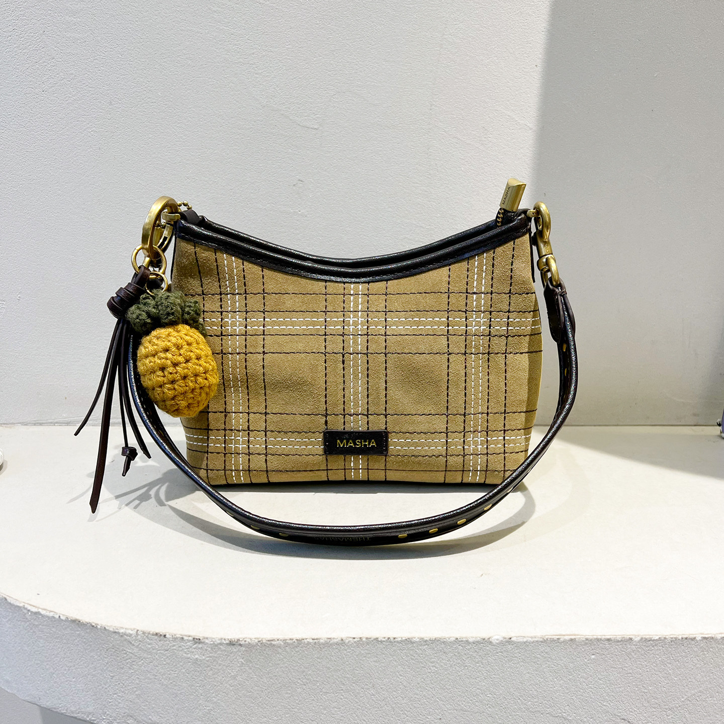 玛莎时尚英伦风磨砂皮格纹腋下包女包2025新款百搭双面单肩斜挎包