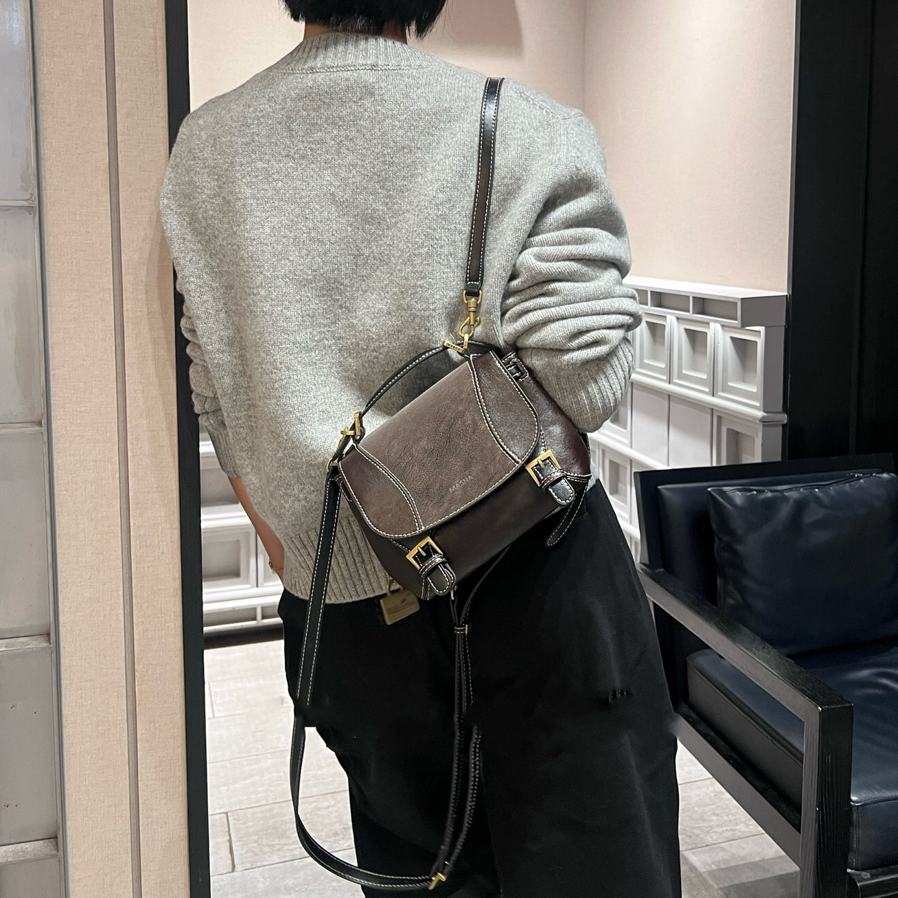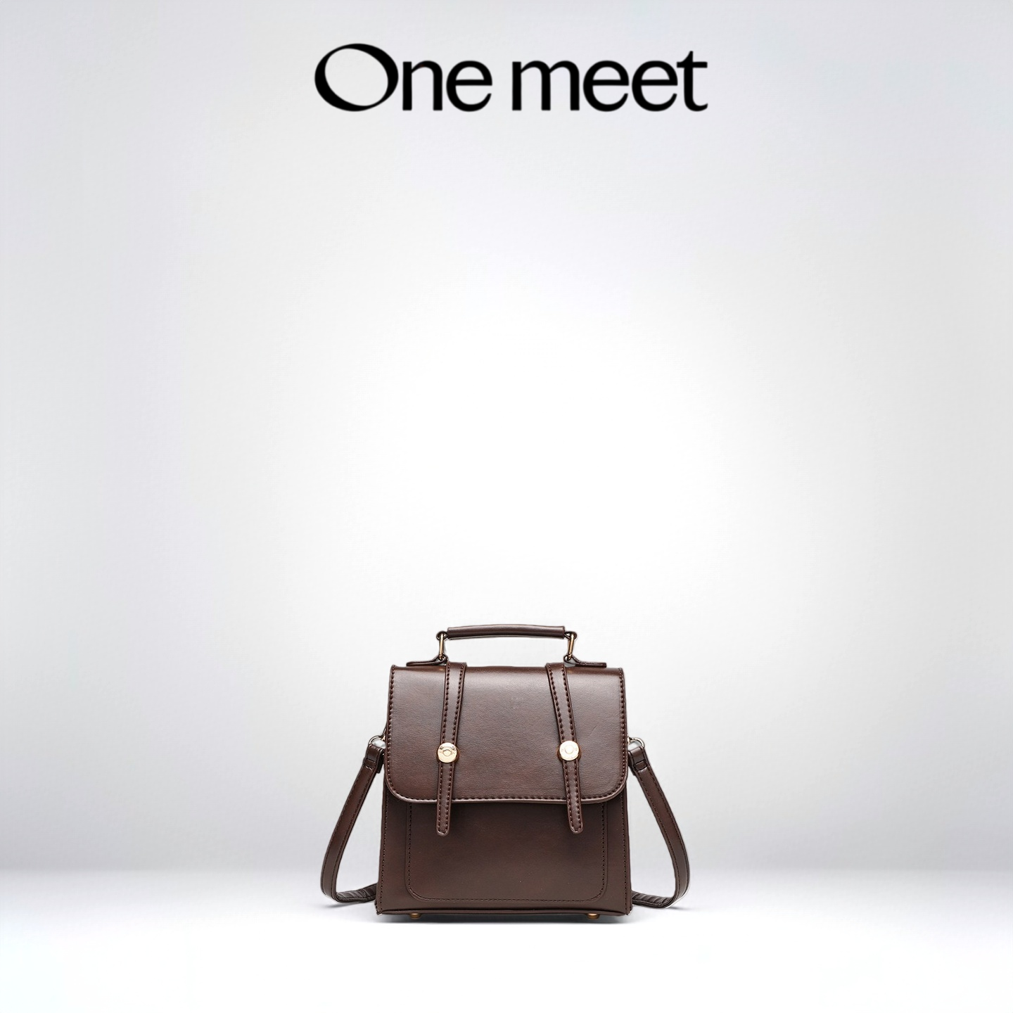 ONE MEET晚觅英伦风复古双肩包女美拉德英伦包学院风包包轻奢真皮