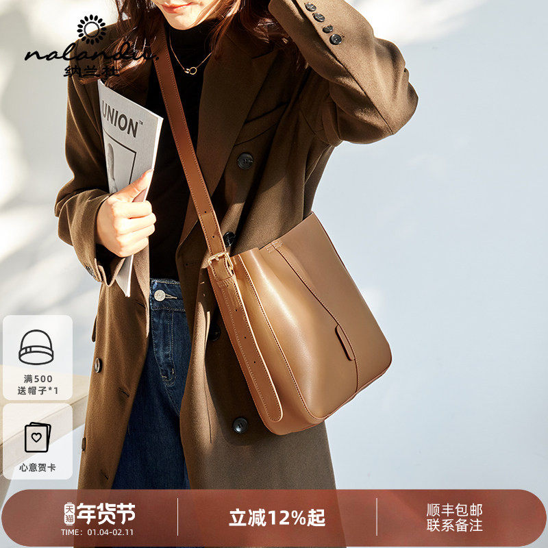纳兰杜英伦风水桶包2025新款秋冬季大容量通勤斜挎包时尚单肩女包