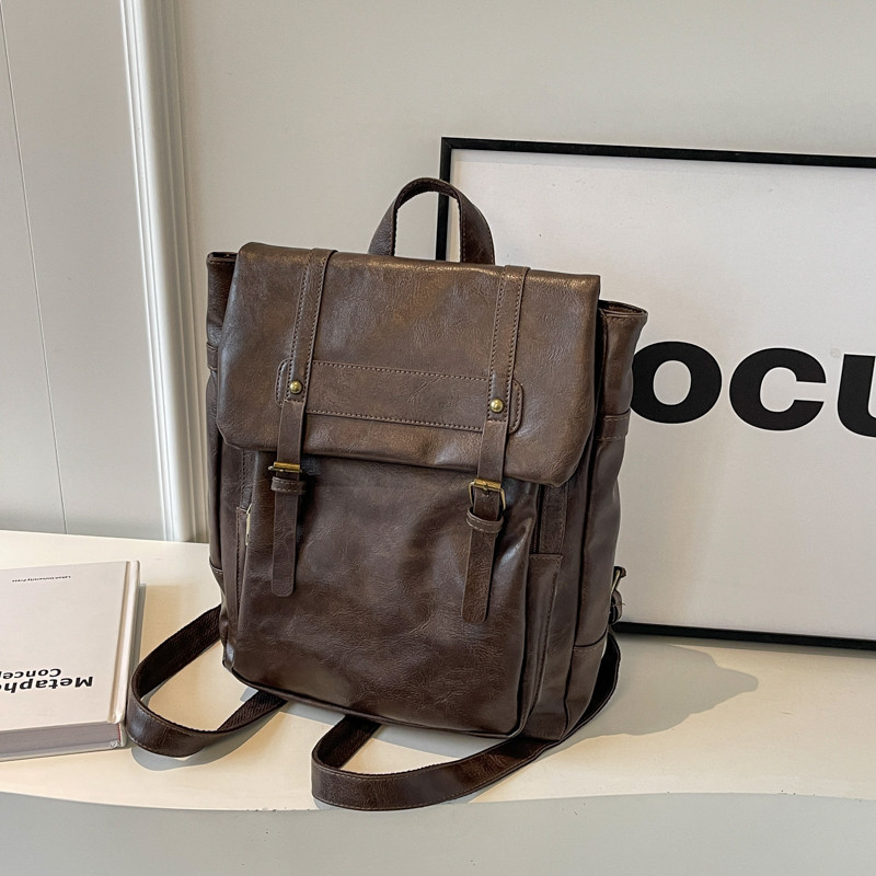 英伦学院风双肩包港风通勤商务软皮质感大学生书包大容量旅行背包