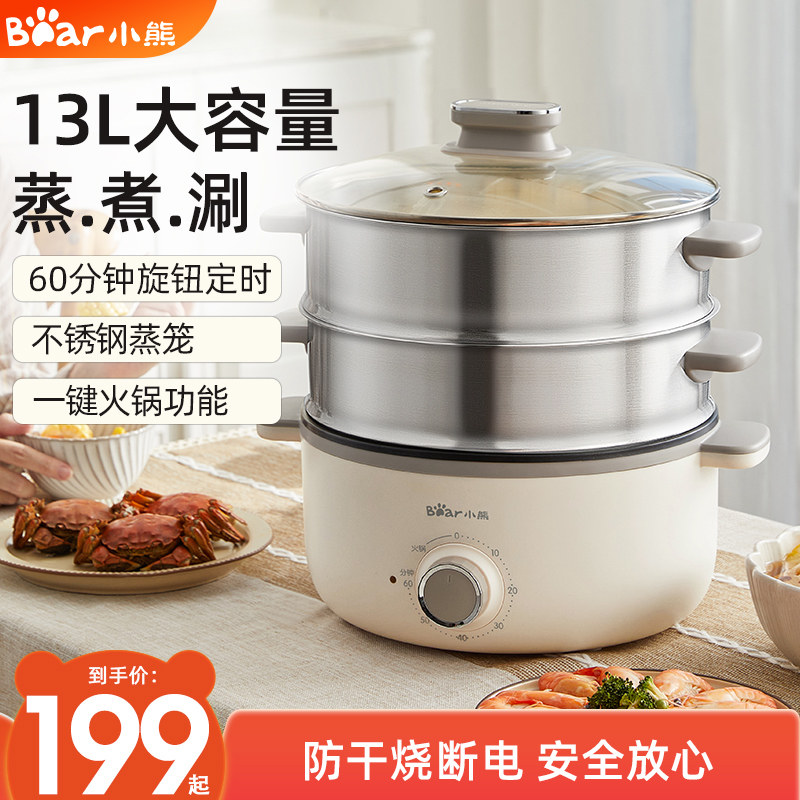 小熊电蒸锅不锈钢家用三层蒸煮一体早餐机电煮锅火锅炖小蒸箱蒸笼