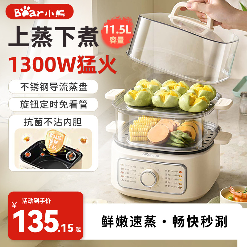 小熊电蒸锅不锈钢多功能家用三层蒸炖一体煮火锅早餐机蒸笼小蒸箱