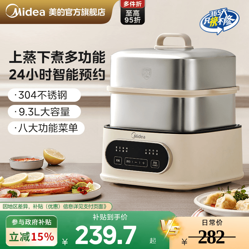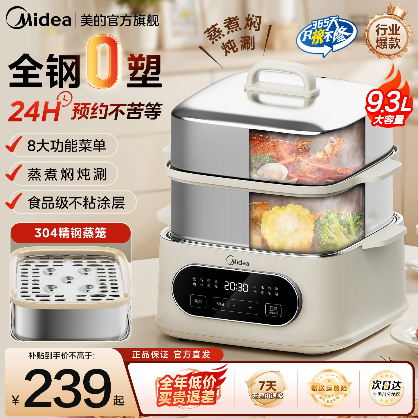 美的电蒸锅不锈钢家用蒸炖多功能一体锅可预约电蒸箱官方旗舰正品
