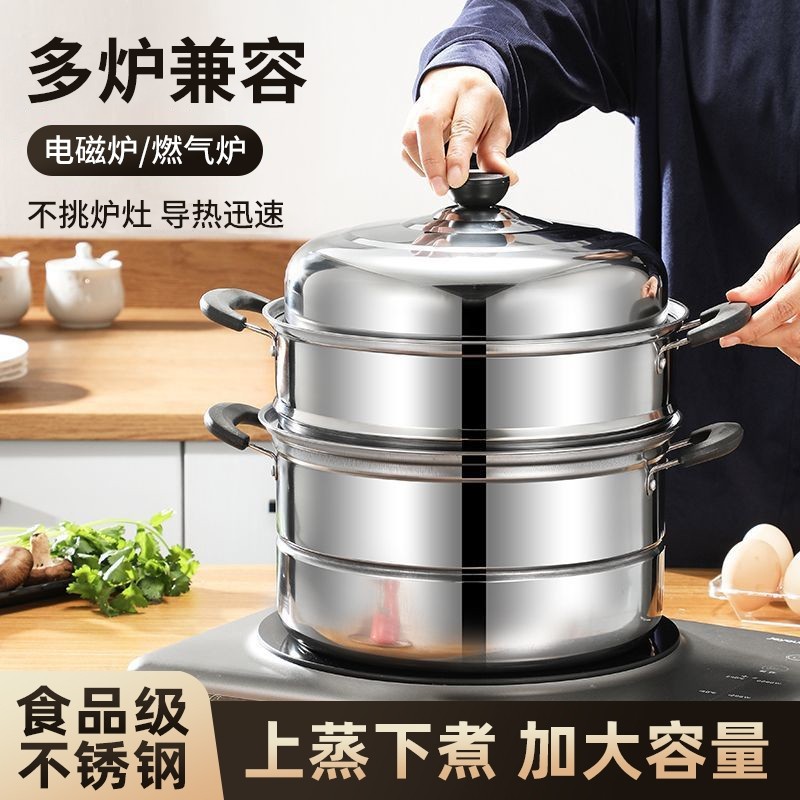 304不锈钢蒸锅家用蒸笼多层笼屉蒸煮炖锅大容量电磁炉煤气灶专用