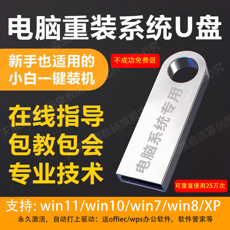 正版系统u盘win7/10纯净版wi11一键安装盘xp电脑重装pe启动系统盘