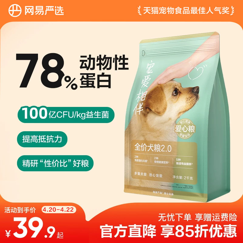 网易严选宠爱相伴犬粮老成犬幼犬低敏羊奶粉公益狗粮40斤装通用型