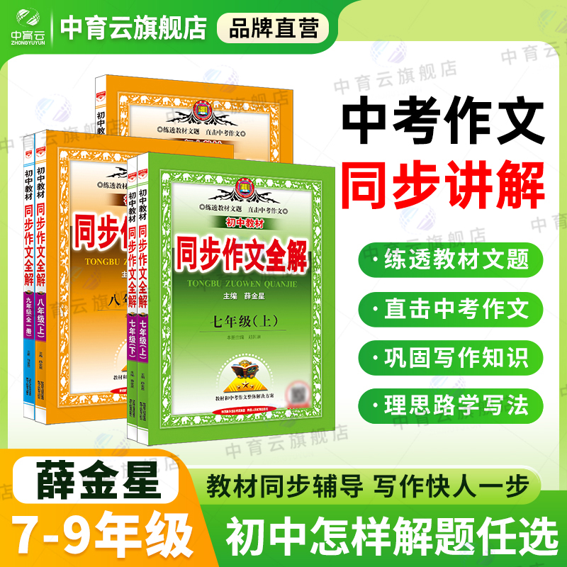 初中教材同步作文全解七年级八年级九年级人教版上册下册人教部编版同步作文辅导有声作文中学生同步学习工具书籍薛金星