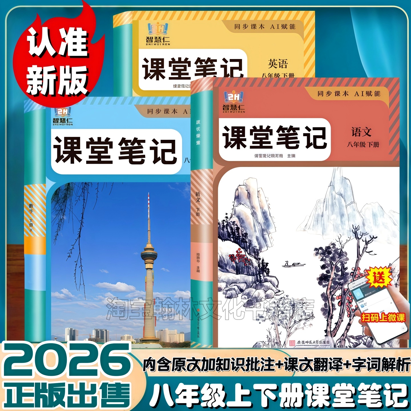 2026新版八年级上下册语文数学英语课堂笔记同步部编人教版初二上下册语数英物理生物地理中学教材全解新改版8年级随堂笔记讲解书
