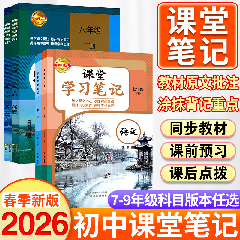 2026新版课堂笔记七年级下册上册八年级九年级语文数学英语全套7下初一二三人教版北师外研译林初中同步课本新教材书中学全解预习