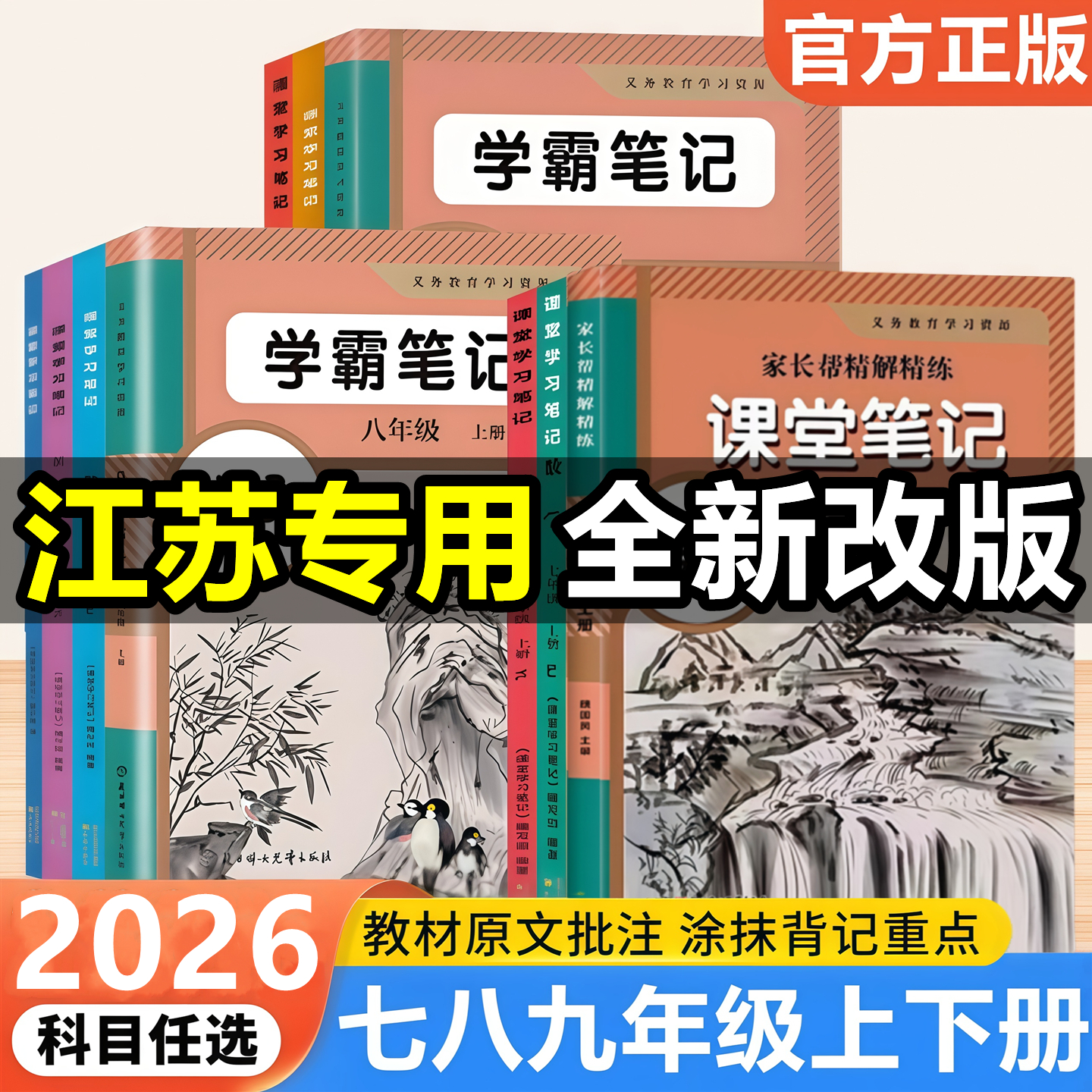 2026新版苏教版课堂笔记七八年级九年级上册下册语文数学英语物理化学历史政治地理初一初二初三学霸笔记同步教材课本原文教材全解