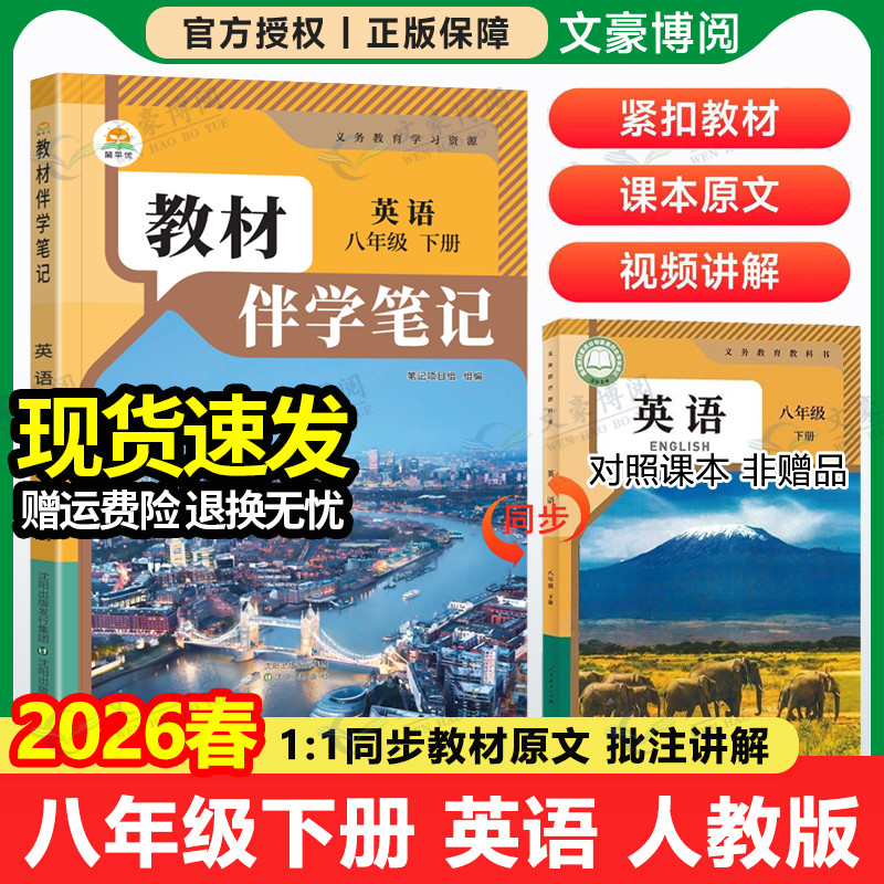 2026春初中教材伴学笔记八年级下册英语人教版数学语文物理生物初二8上全套课本同步课本讲解全解解读解析课前预习随堂笔记