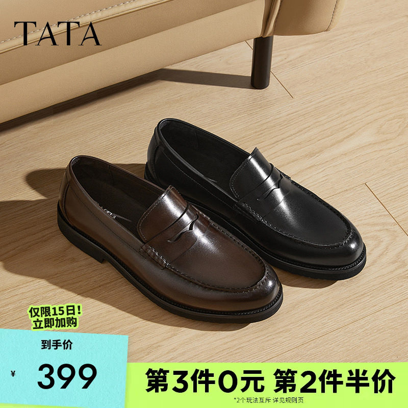 TATA他她一脚蹬乐福豆豆鞋男士商务休闲皮鞋真皮舒适爸爸鞋2026新