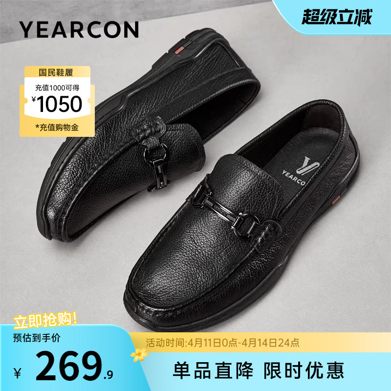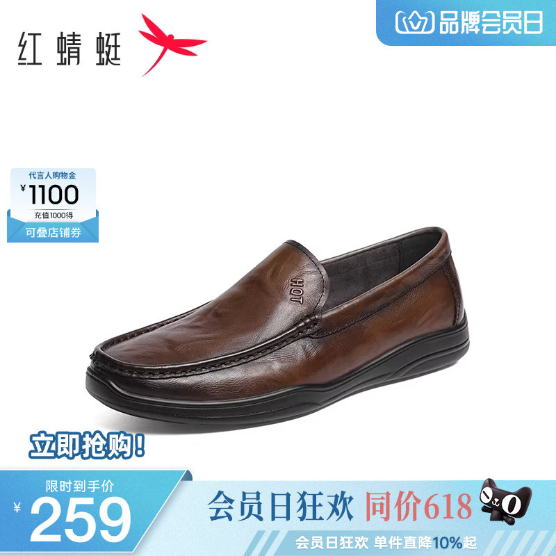 红蜻蜓休闲皮鞋春秋新款真皮男鞋男士一脚蹬乐福豆豆鞋中年爸爸鞋