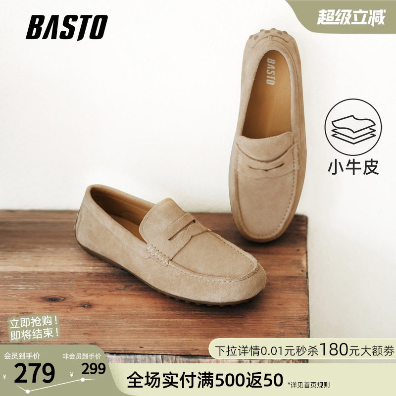 百思图26春季商场新款一脚蹬豆豆乐福鞋休闲真皮男士皮鞋SK262AM6
