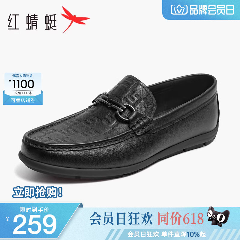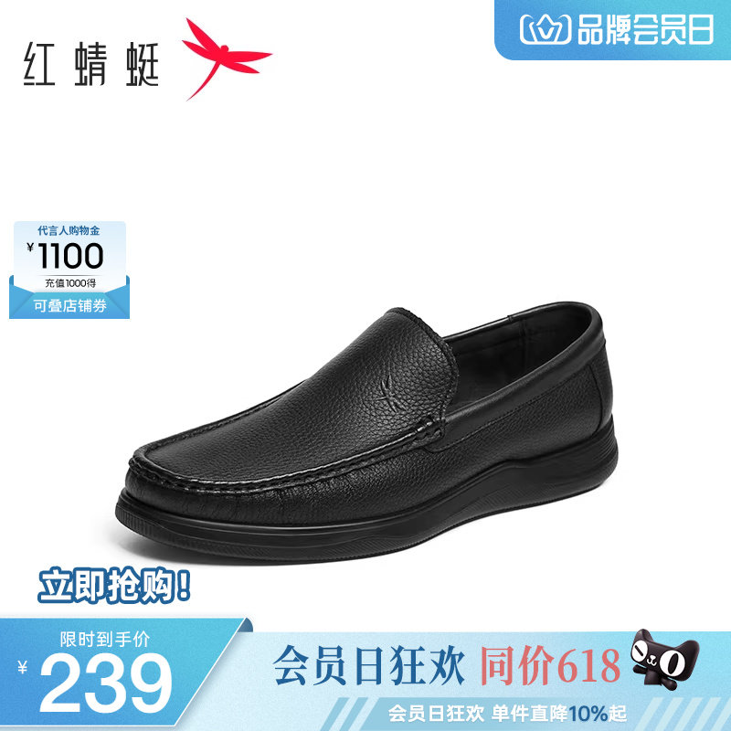红蜻蜓休闲皮鞋春秋新款男鞋一脚蹬商务通勤皮鞋真皮男士豆豆鞋男