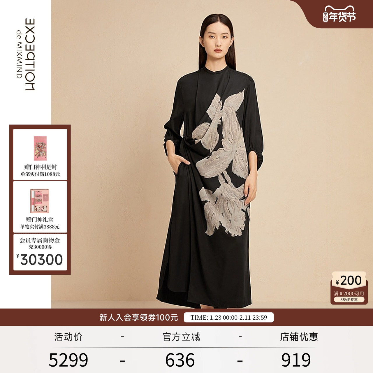 EXCEPTION例外春秋款连衣裙宽松新中式印花七分袖A字裙子中长裙女