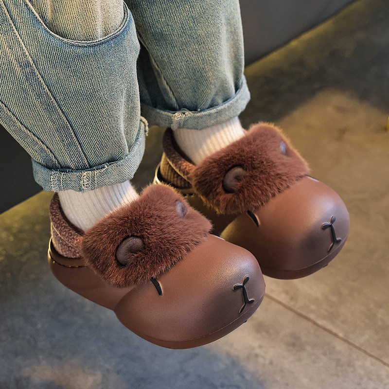 卡皮巴拉儿童棉拖鞋男童冬季防滑亲子女孩宝宝包跟毛棉鞋卡通室内