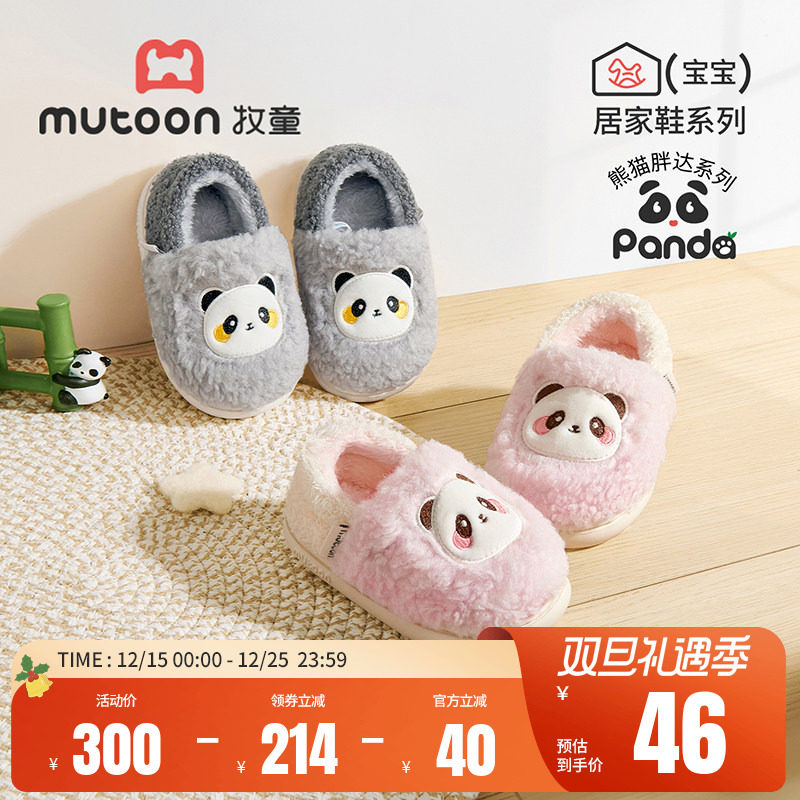 牧童宝宝拖鞋冬季加绒保暖卡通熊猫包跟棉鞋男童室内毛毛鞋小女孩
