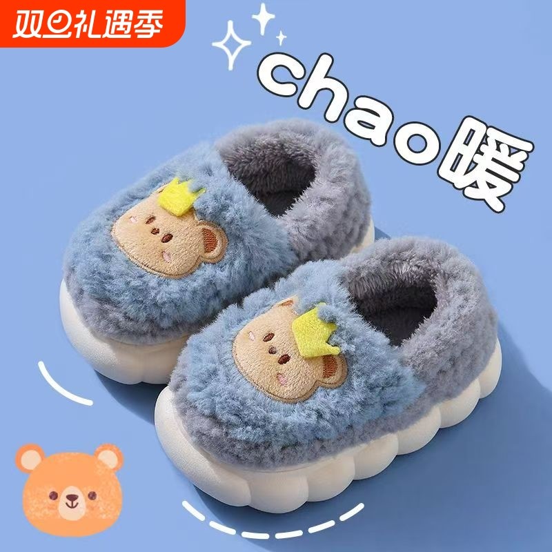 包跟儿童棉拖鞋男女童冬季可爱卡通包跟防滑室内加绒毛毛宝宝棉鞋