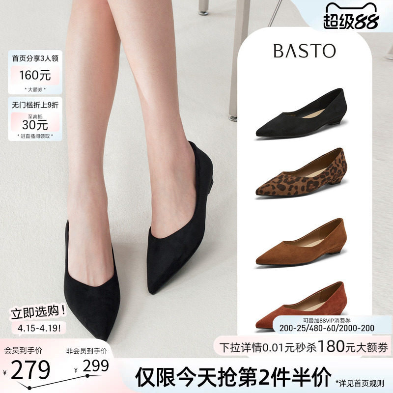 百思图2026春新款气质绒面跟鞋浅口单鞋复古粗跟尖头女鞋R6551AQ6