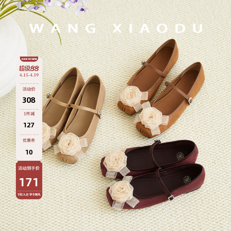 原创【王小毒】四时玫瑰○绒面浅口单鞋女复古玫瑰粗跟玛丽珍女鞋
