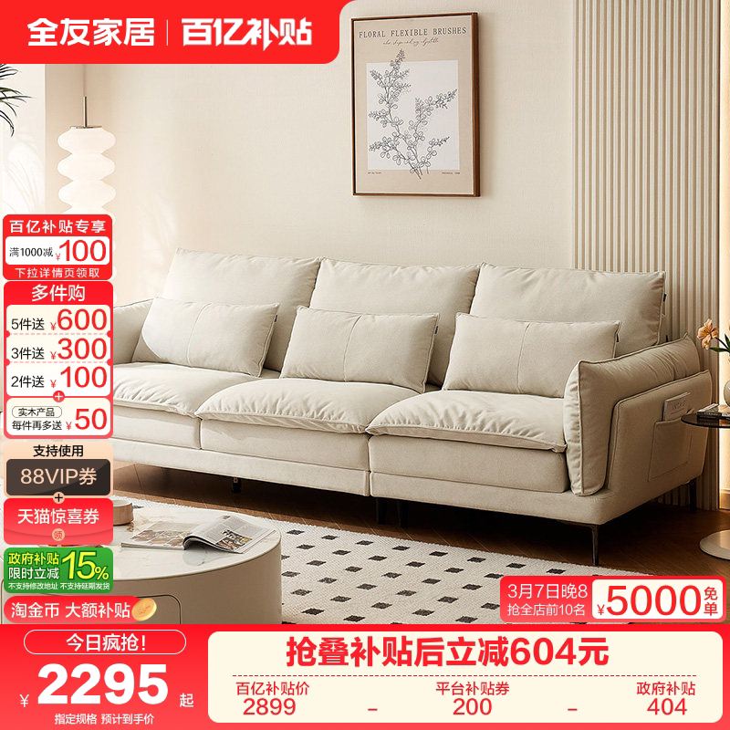 沙发政府补贴客厅2026新款小户型云朵布艺双人直排中古奶油风佛山