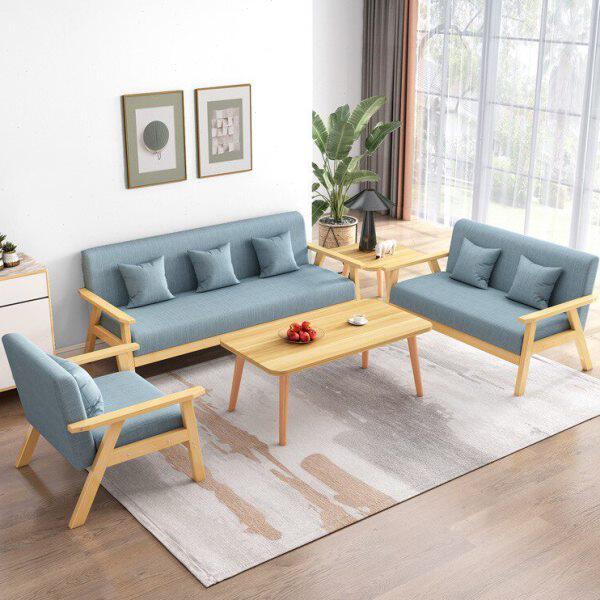 北欧实木沙发组合现代简约客厅小户型布艺双人三人位出租房用家具