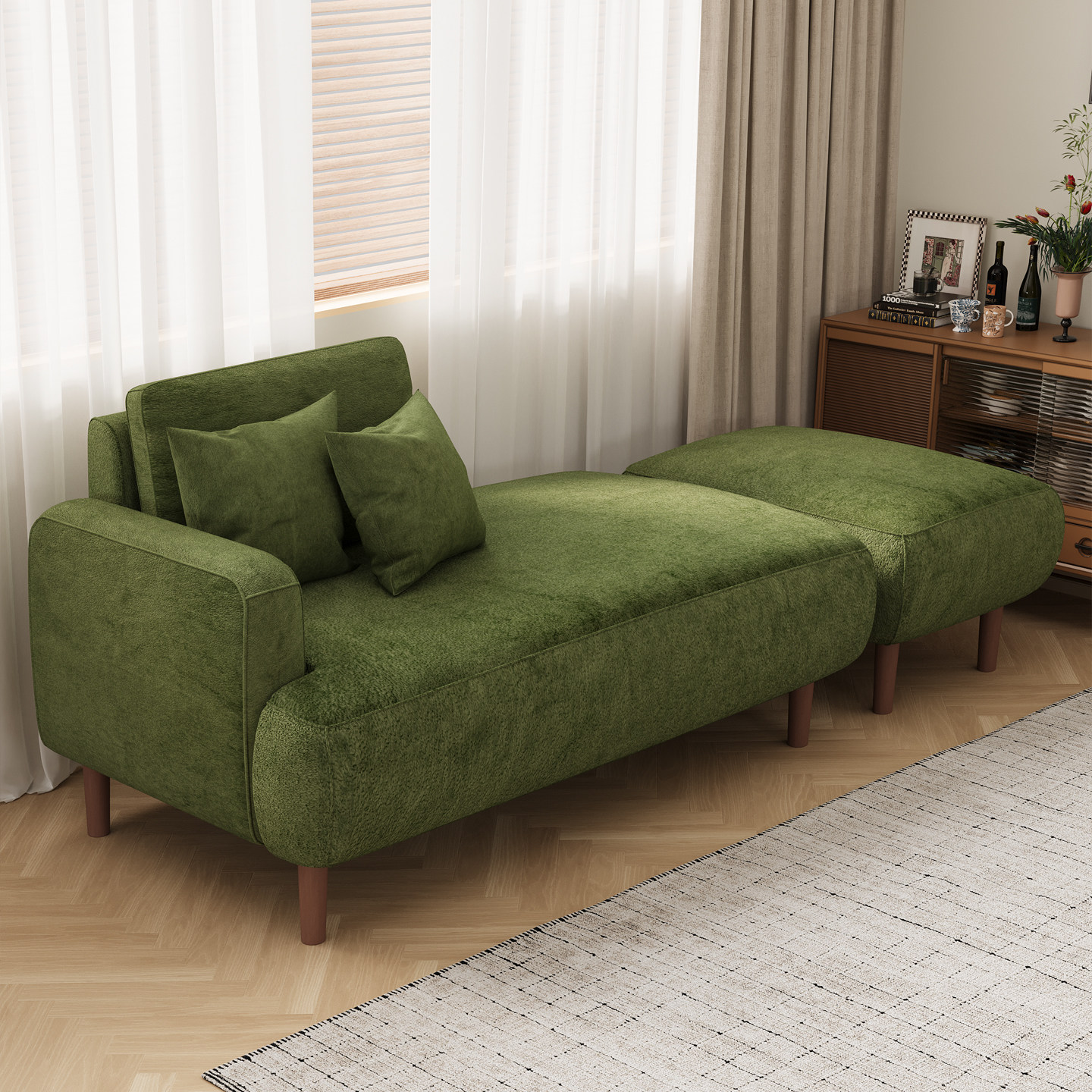 雪尼尔布艺沙发贵妃位中古客厅小户型可躺双人三人直排模块小沙发