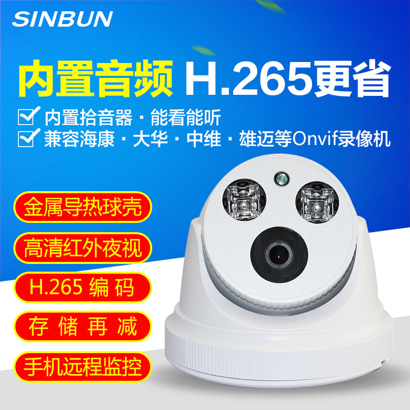 POE高清网络摄像头400万H.265日夜全彩带音频半球监控器海康协议