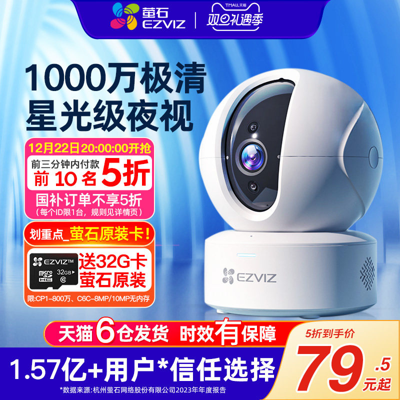 萤石摄影头监控家用家庭室内高清无线网络莹石云摄像头官方旗舰店