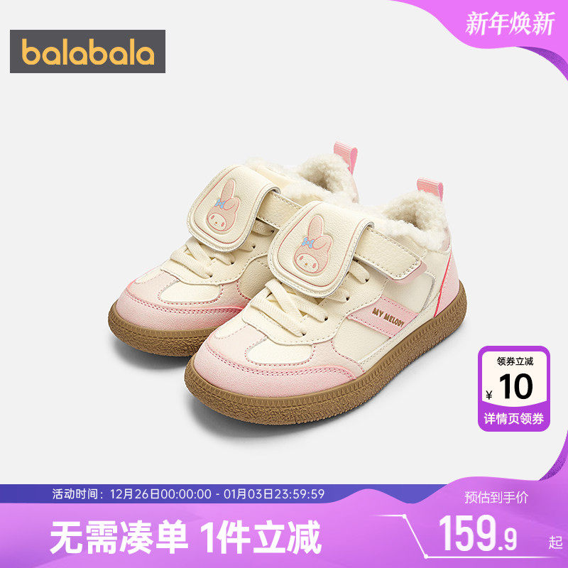 巴拉巴拉女童板鞋中大童宝宝休闲鞋子冬季新款童鞋儿童加绒运动鞋