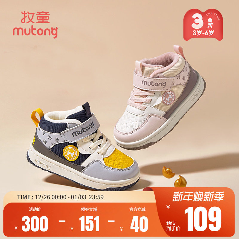 牧童童鞋儿童棉鞋男童冬季加绒加厚小高帮板鞋女童保暖小童运动鞋