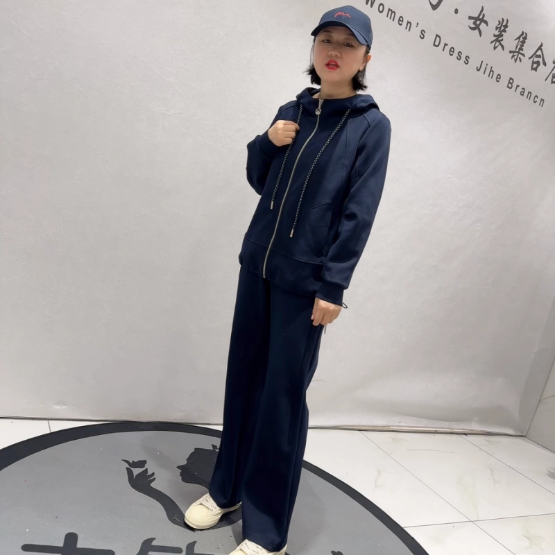 邑品运动休闲套装两件套2026春季新款宽松显瘦连帽卫衣高腰束脚裤