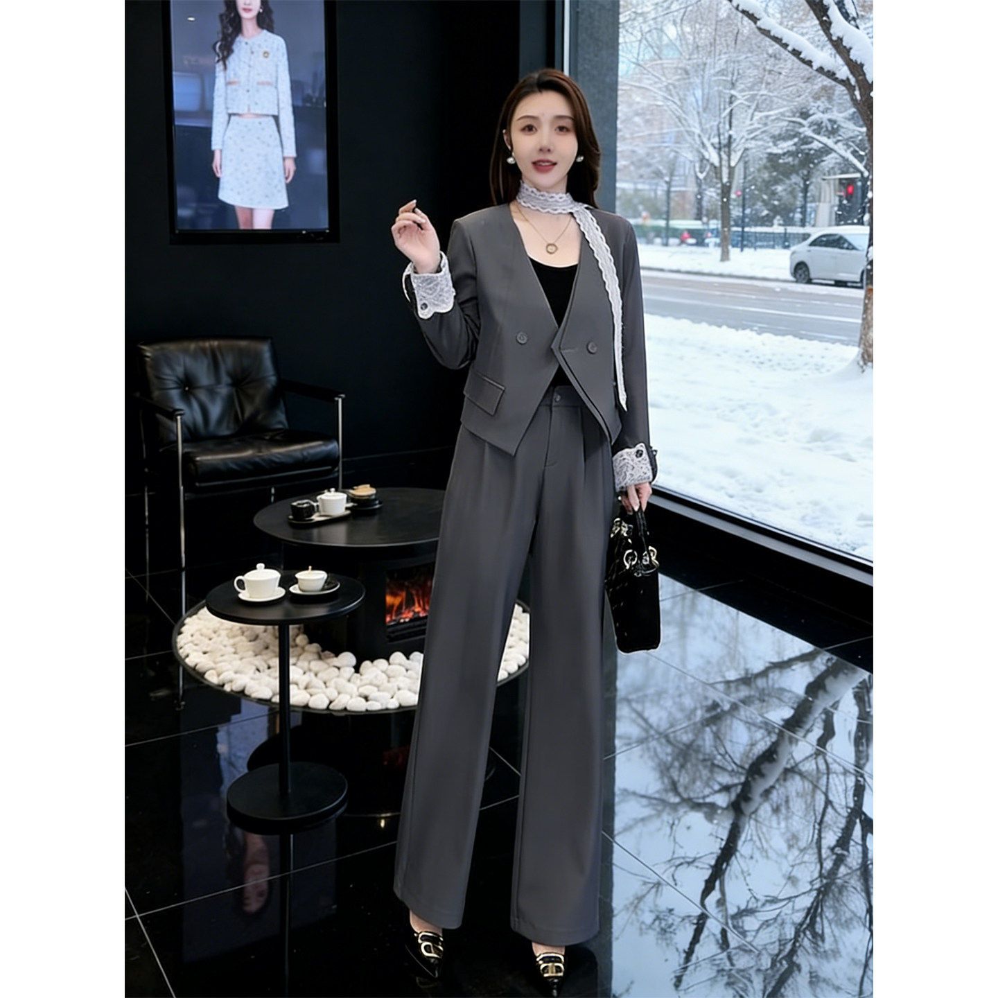 2026春季新款大码女装老钱风西装套装女胖mm宽松休闲阔腿裤两件套