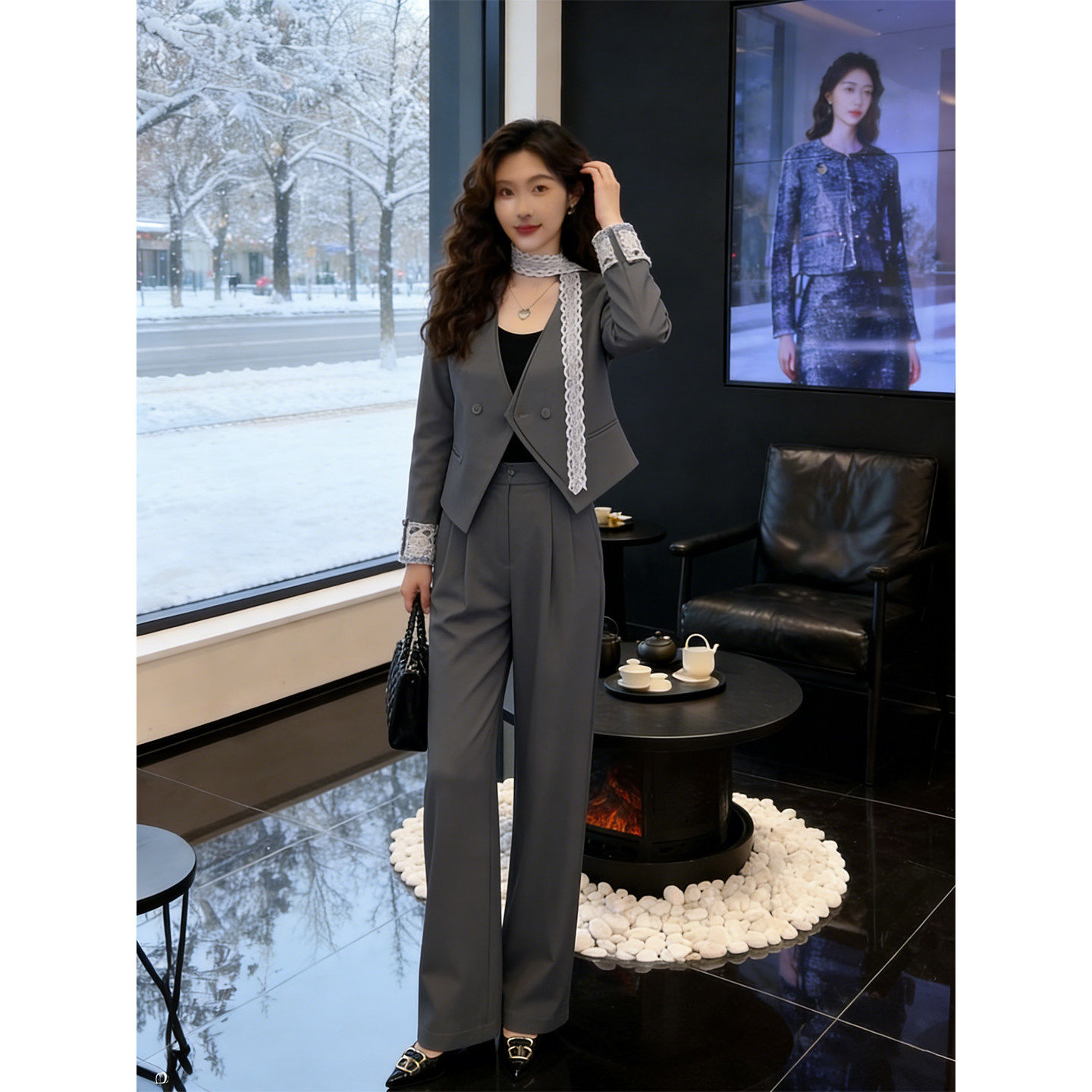 小香风时尚套装女士2025春季新款短款外套+直筒裤气质两件套潮