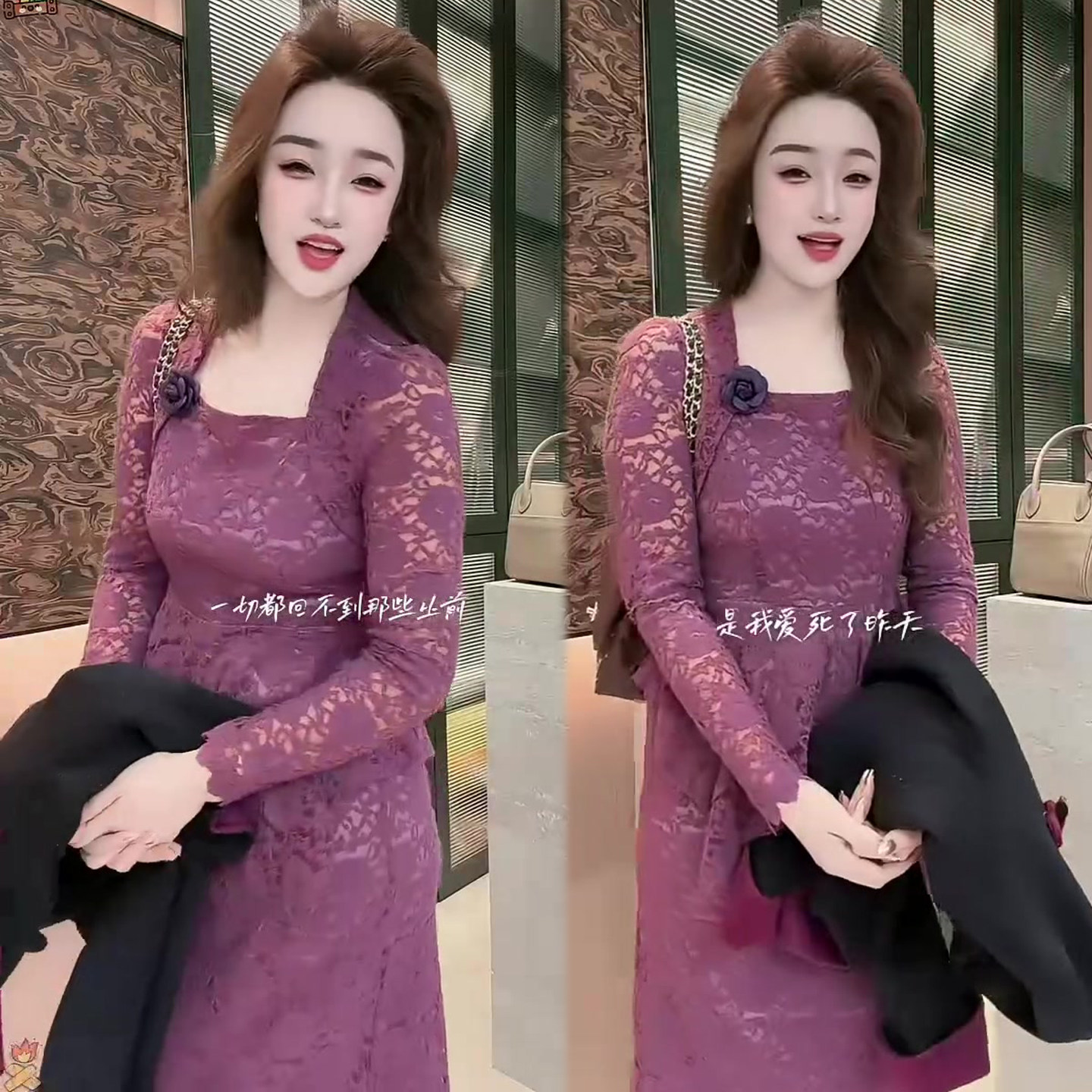 2025春季新款时尚套装女轻奢女人味蕾丝长袖修身上衣半身裙两件套
