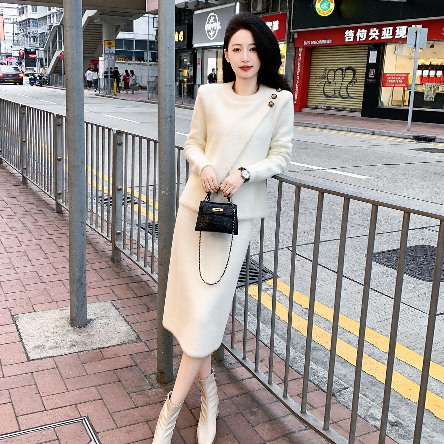 小香风套装裙女春季新款感新中式毛衣包臀半身裙针织两件套装裙子