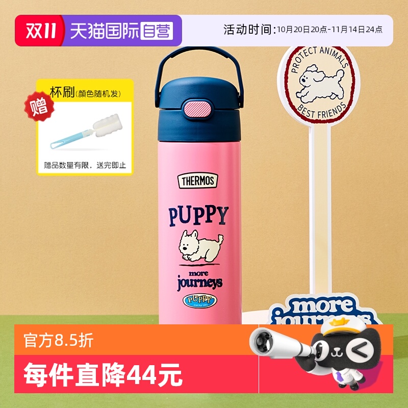 膳魔师儿童保温杯办公室男女水杯带吸管幼儿园萌宠动物系列316钢