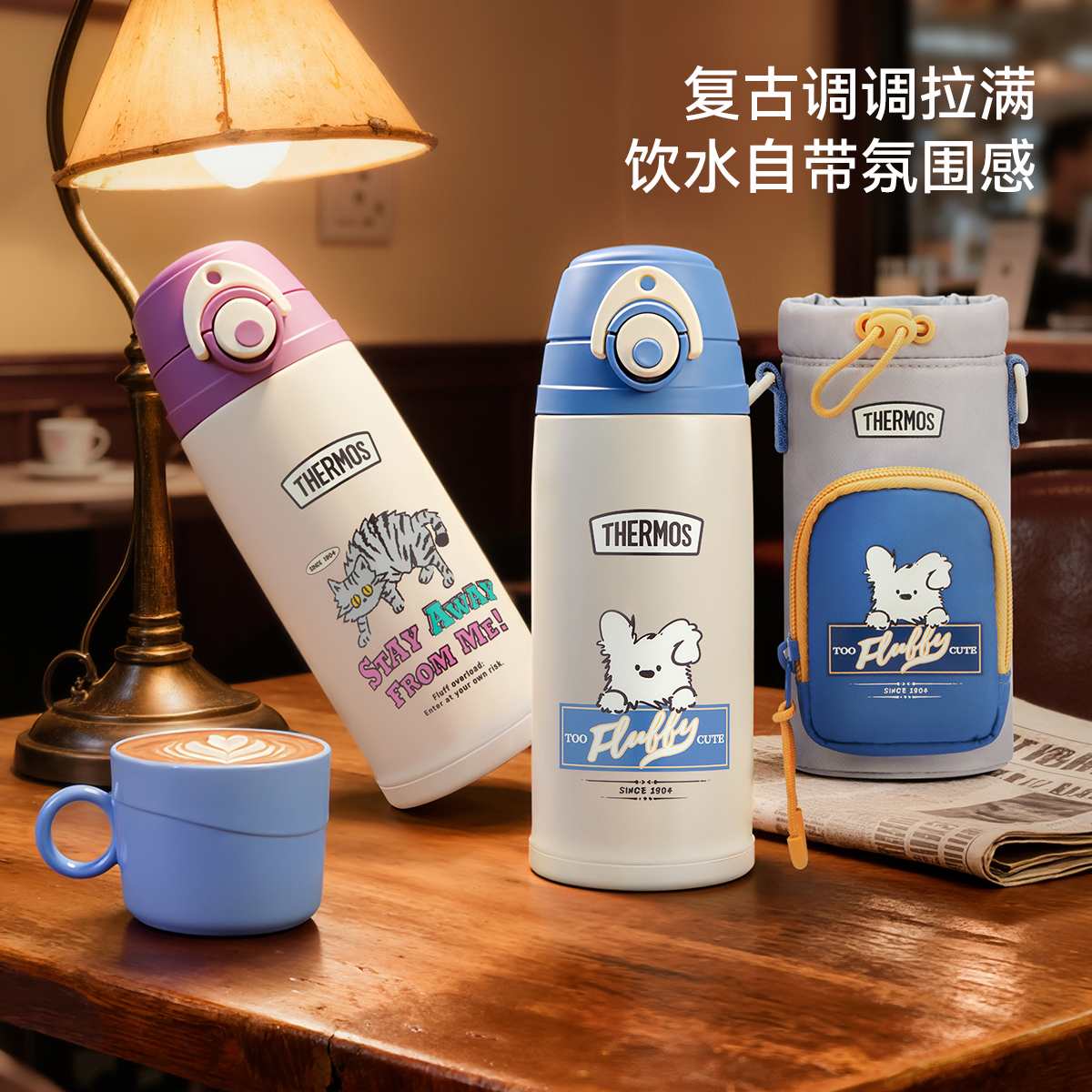 膳魔师儿童保温杯学生上学外出郊游吸管杯大容量直饮水杯复古系列