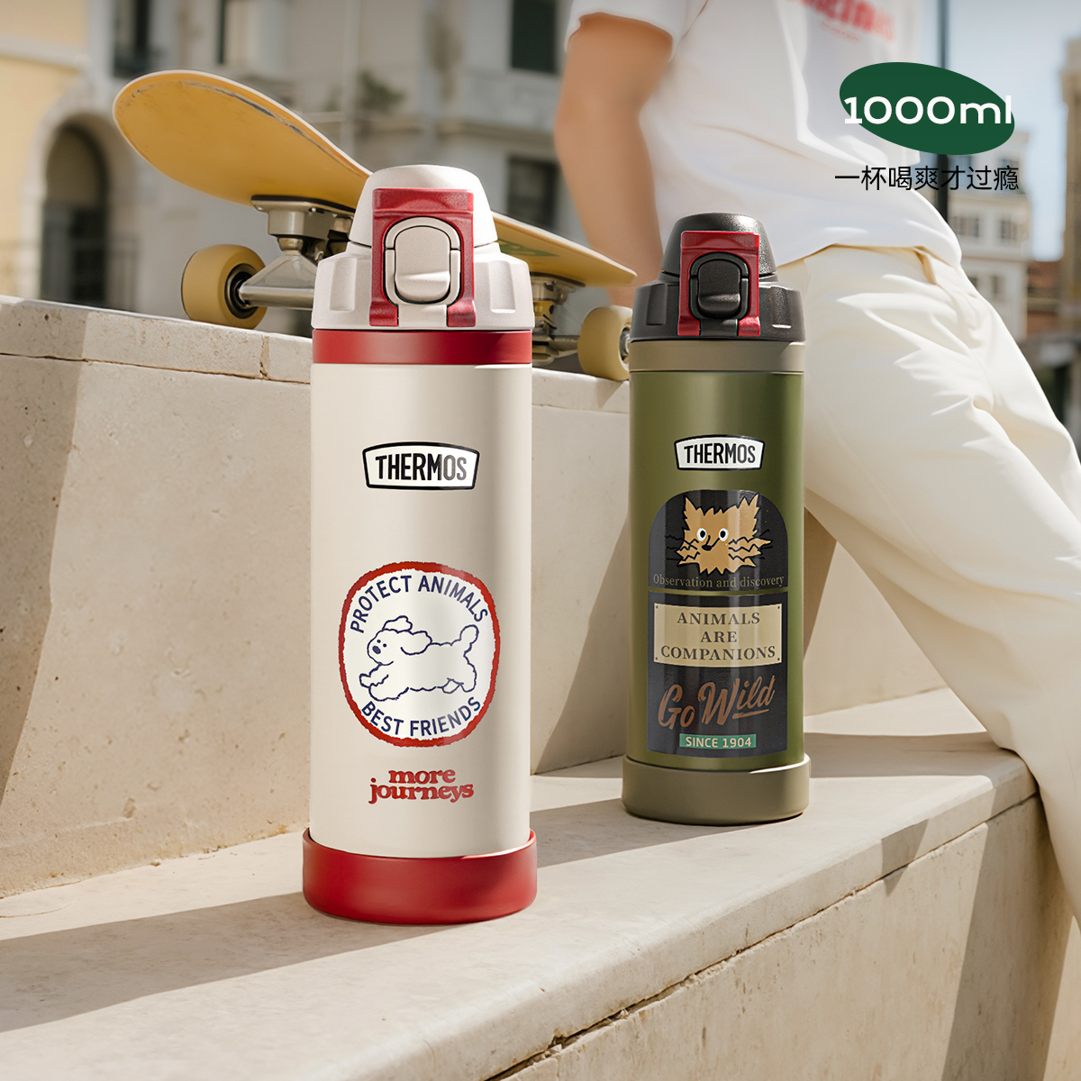 膳魔师儿童保温杯户外运动上学便携提手大容量水杯大童直饮杯复古