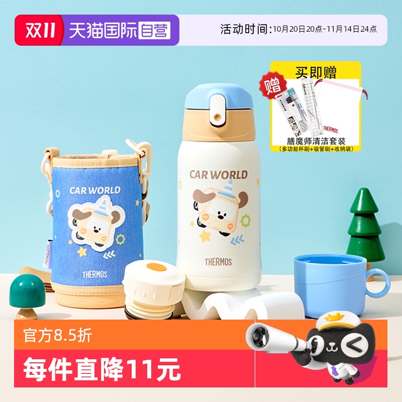 膳魔师儿童保温杯宝宝吸管杯学生便携可爱杯套幼儿园居家外出水杯