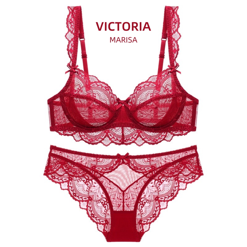 维多利亚玛丽莎性感文胸套装本命年红色半杯薄小胸聚拢结婚内衣女