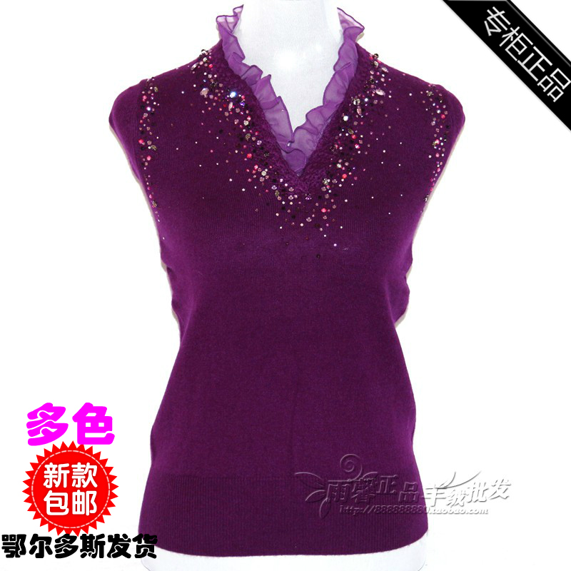 新品羊绒衫女V领套头宽松毛衣蕾丝可拆卸领钻羊毛大码女装针织衫