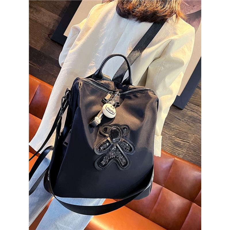 牛津布双肩包女2025新款韩版休闲大气亮片背包防水简约斜挎包代购