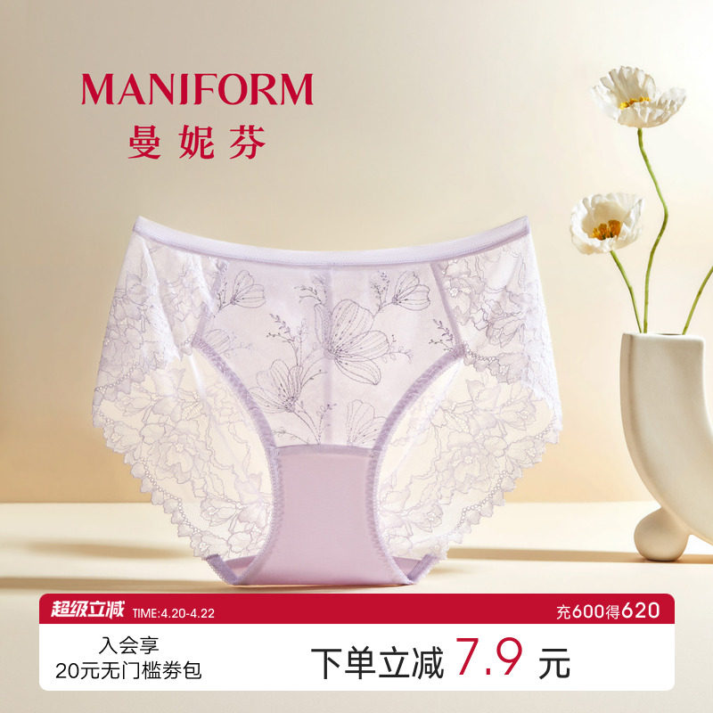 曼妮芬内裤高颜值女士舒适薄中低腰三角裤性感蕾丝裤抗菌内裆底裤